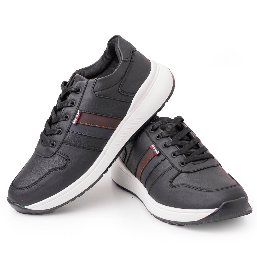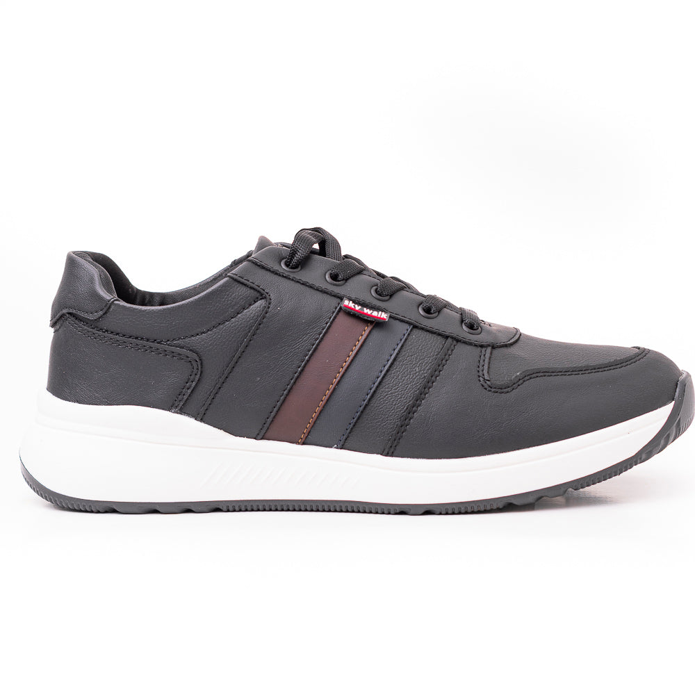 Este tenis urbano para hombre combina estilo contemporáneo y funcionalidad en un diseño versátil y atractivo. Confeccionado en color negro con pequeños detalles en marrón sobre los laterales, ofrece un contraste elegante que realza su estética moderna. La capellada tipo cuero brinda resistencia y durabilidad, mientras que los cordones negros aseguran un ajuste firme y cómodo. La suela blanca con diseño ergonómico y patrón antideslizante proporciona excelente tracción y confort durante todo el día. La etiqueta lateral con el logo Sky Walk añade un toque distintivo y urbano.