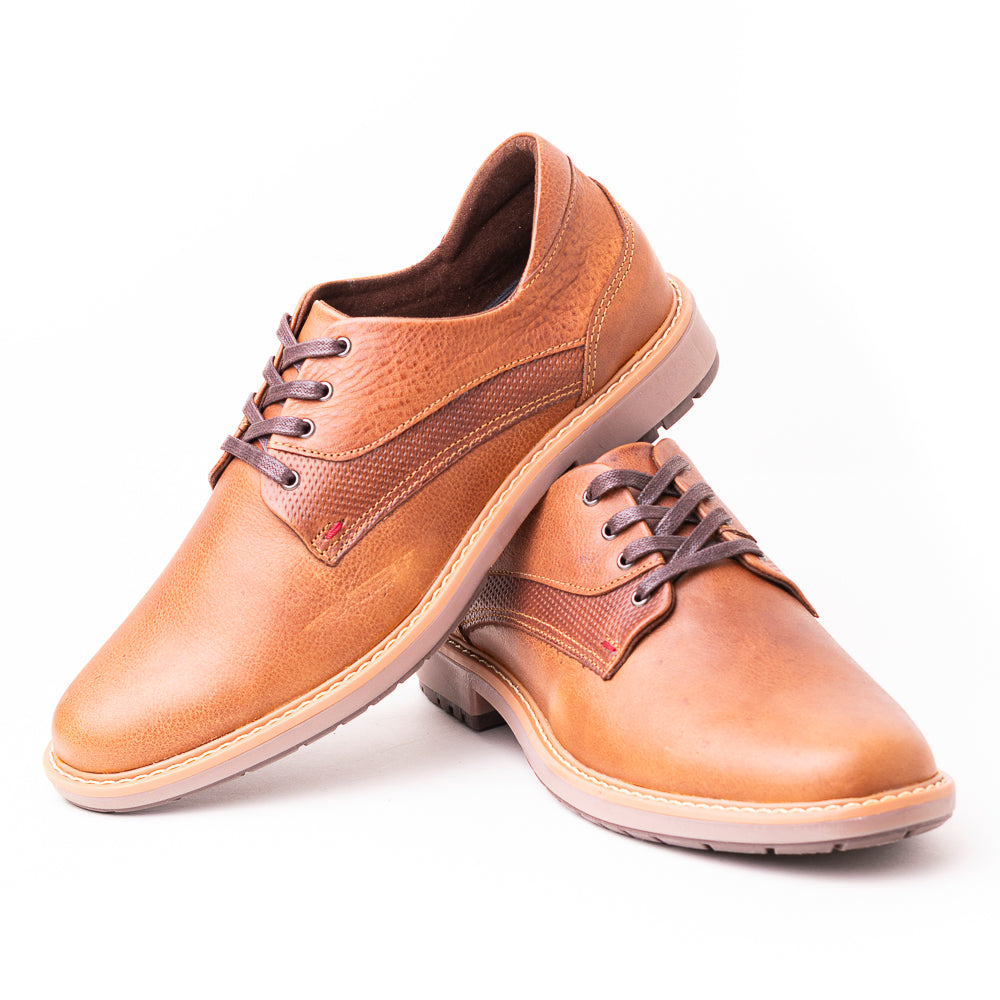 Este zapato casual para hombre combina elegancia cl‡sica y funcionalidad en un dise–o adaptable a distintos entornos. Elaborado en un tono miel con detalles en un tono un poco mas oscuro, presenta una capellada con textura suave. Los cordones marr—n oscuro y la suela de goma robusta aseguran un ajuste firme, buena tracci—n y comodidad al caminar. Gracias a su estilo neutro y refinado, es ideal para salidas informales, reuniones familiares, d’as de oficina con c—digo relajado o recorridos urbanos donde se busca un equilibrio entre confort y presentaci—n.