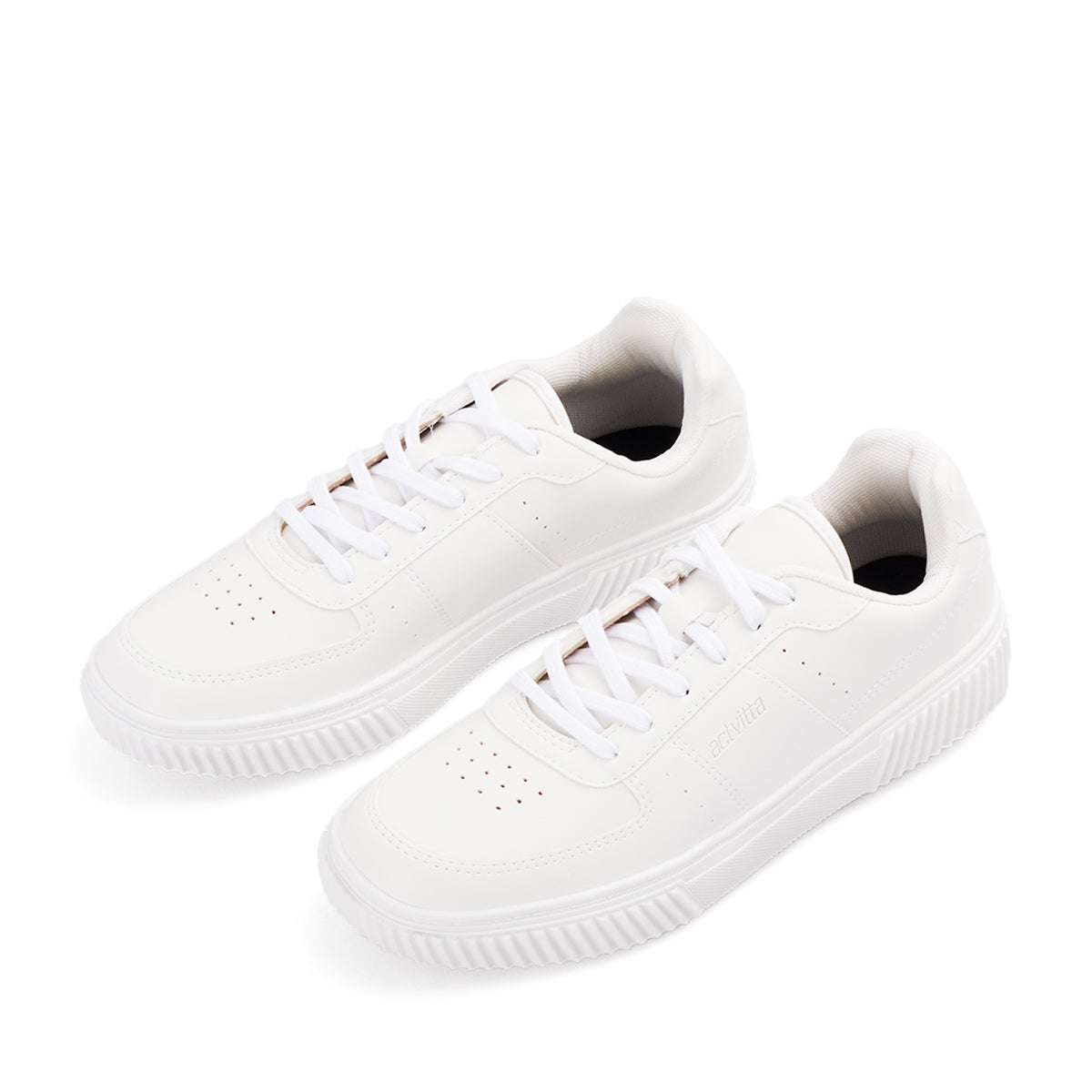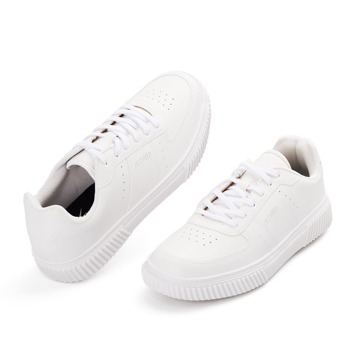 Este tenis urbano para hombre combina una estética limpia y contemporánea que se adapta con facilidad a estilos modernos y minimalistas. Elaborado en color blanco, presenta una capellada sintética con acabados lisos y perforaciones frontales que favorecen la ventilación, manteniendo el pie fresco. Los cordones blancos se integran de manera discreta para conservar el diseño sobrio, mientras que la suela blanca de buen grosor ofrece amortiguación, tracción y estabilidad durante recorridos urbanos. El lateral incluye la inscripción “activitta” en tono suave, reforzando el carácter estilizado del modelo.