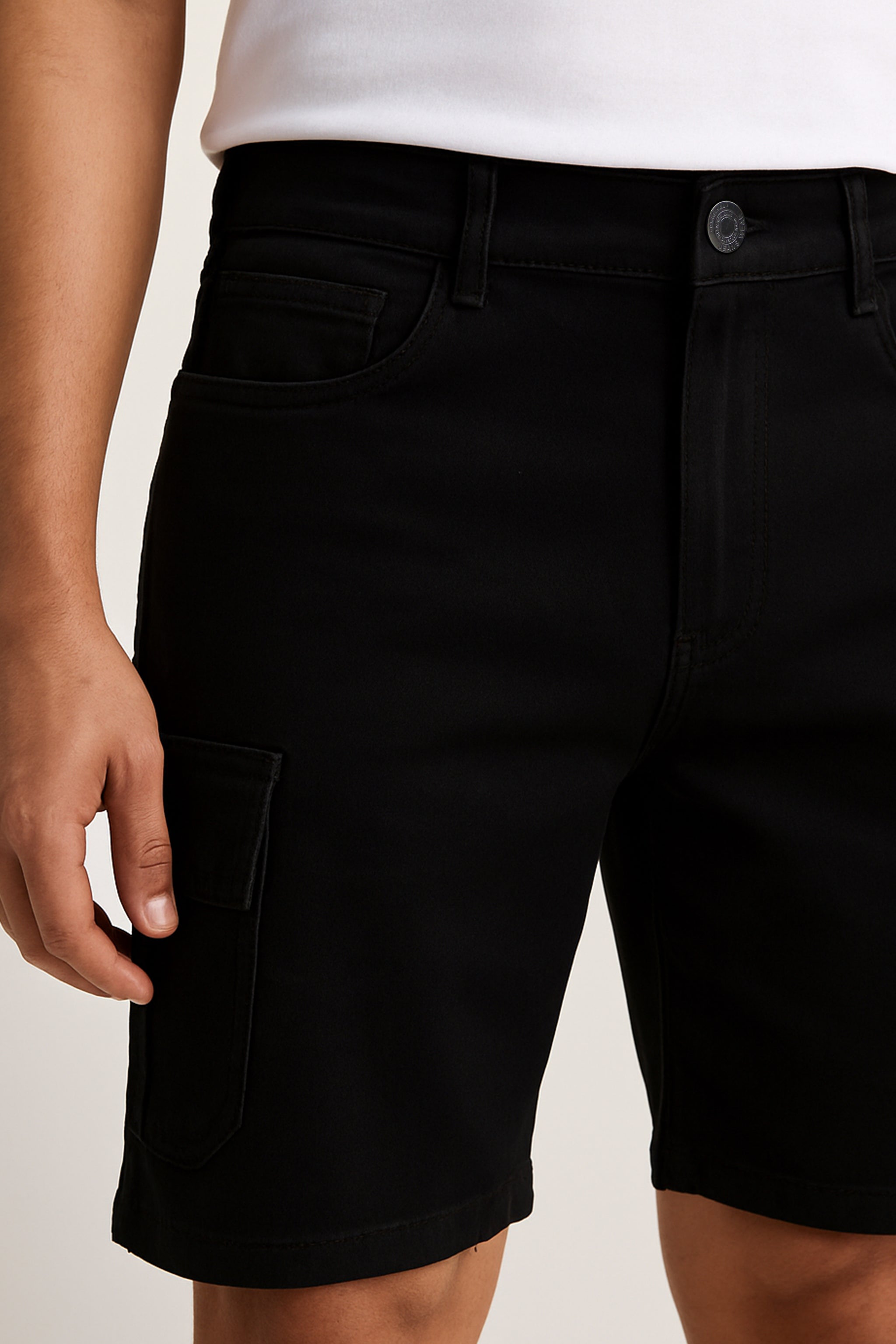 Bermuda cargo en dril unicolor tiro bajo con bolsillos 773146BERMUDA506NEGRO