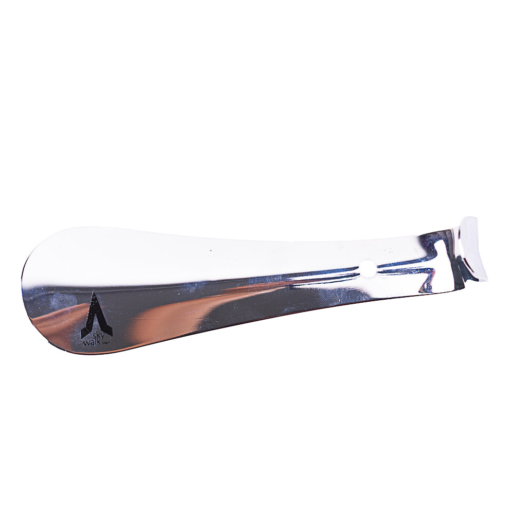 Este calzador metálico facilita el deslizamiento del pie y minimiza el desgaste del talón.